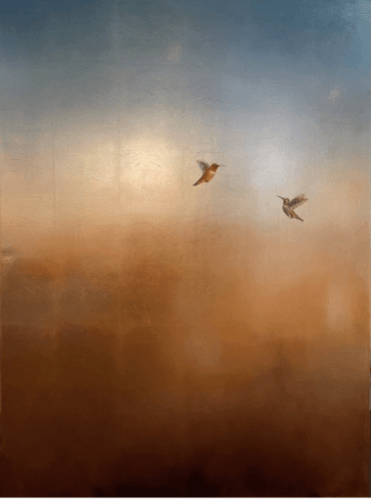 Hummingbirds Playing over the Sunrise